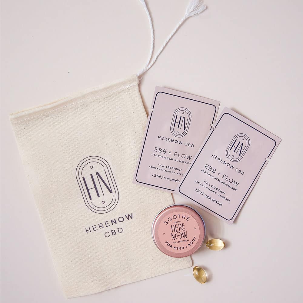 Featuring 4 CBD gummies and 2 servings of EBB+FLOW body oil, all packaged in a cute little sachet that fits in a purse, backpack or pocket.